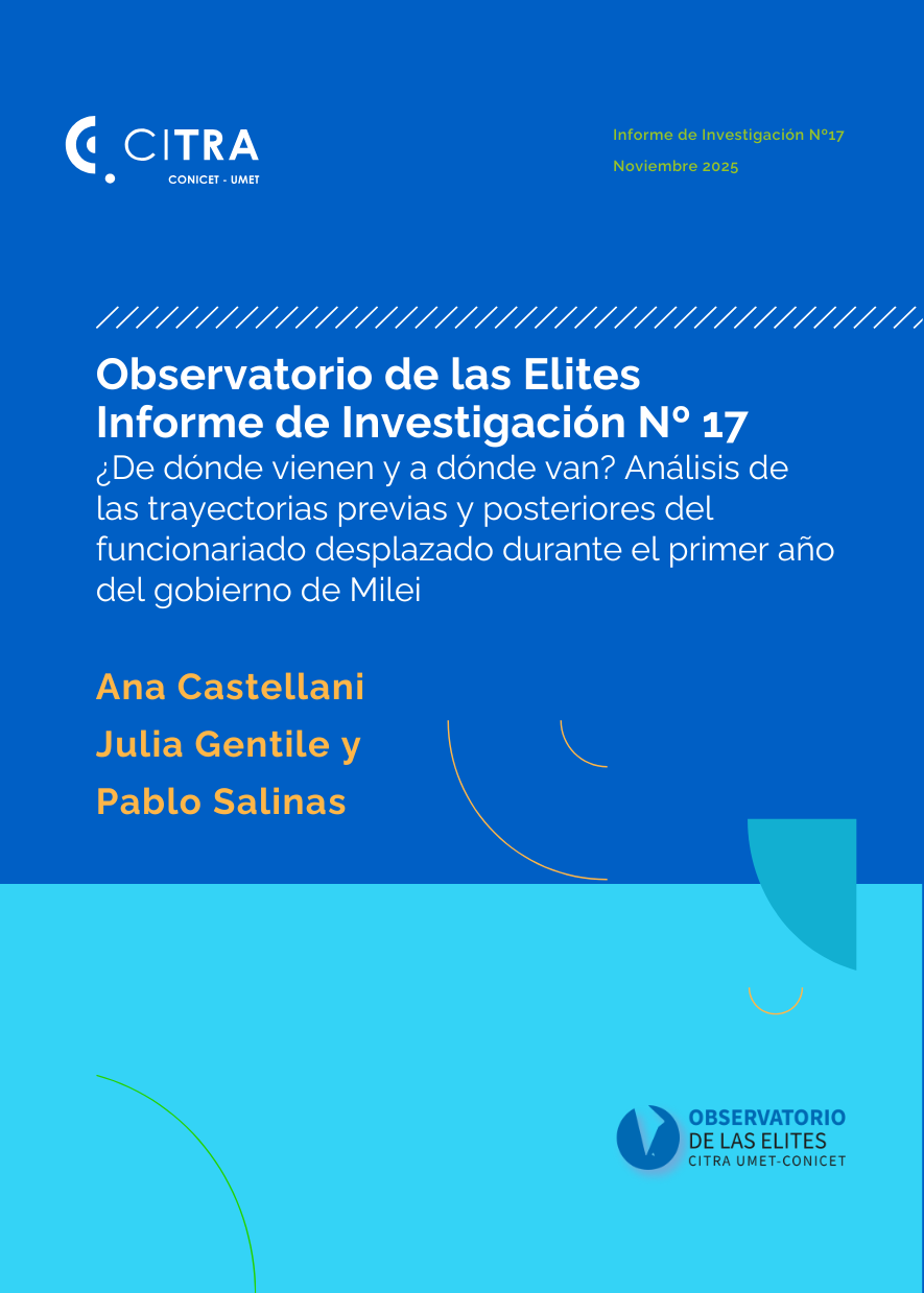 - Informe de investigación Nº 17. ¿De dónde vienen y a dónde van? Análisis de las trayectorias previas y posteriores del funcionariado desplazado durante el primer año del gobierno de Milei
