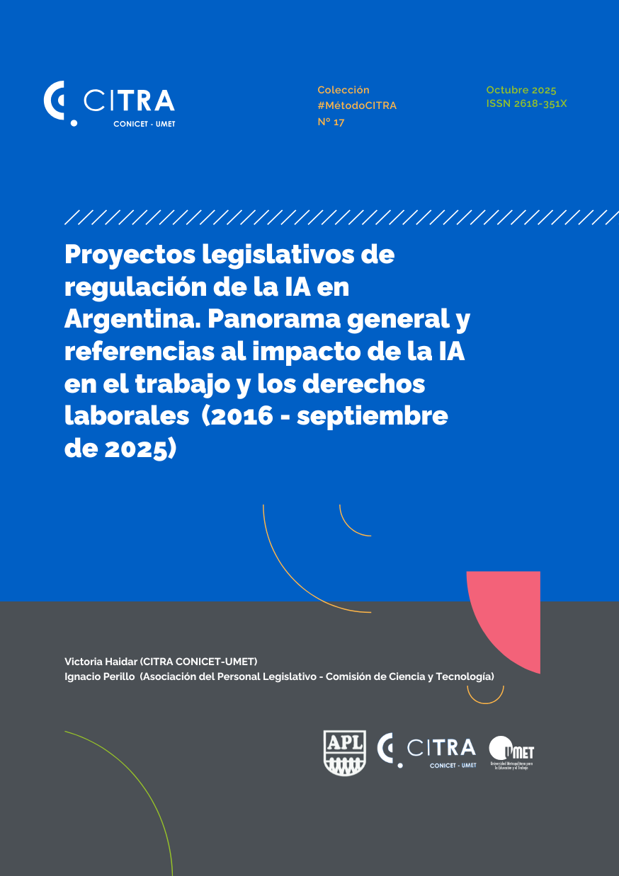 - Método CITRA Nº17. Proyectos legislativos de regulación de la IA en Argentina. Panorama general y referencias al impacto de la IA en el trabajo y los derechos laborales (2016 – septiembre de 2025)